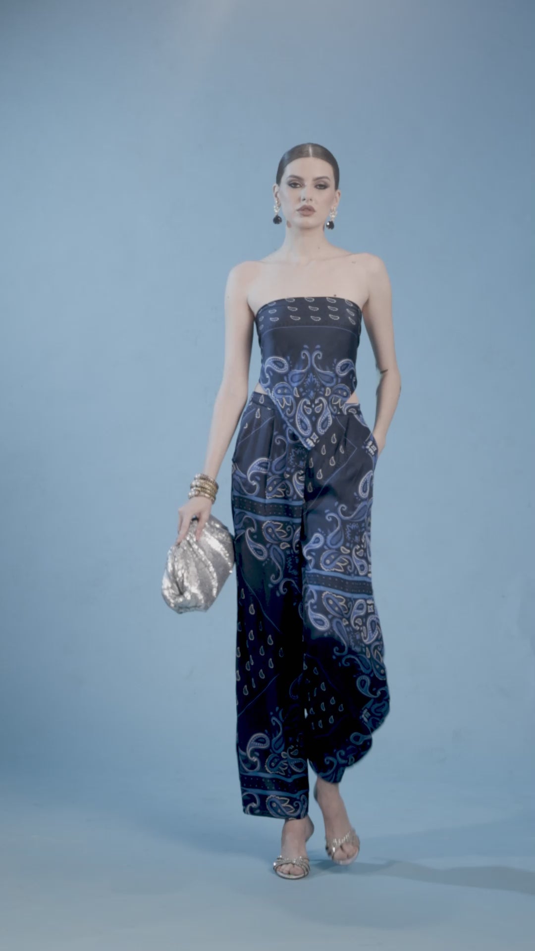 Discover our classy paisley bandeau scarf top, a luxurious addition to your wardrobe. Designed from smooth, flowing fabric, this strapless piece features an intricate paisley print that will make you upscale your gatherings and evening events.