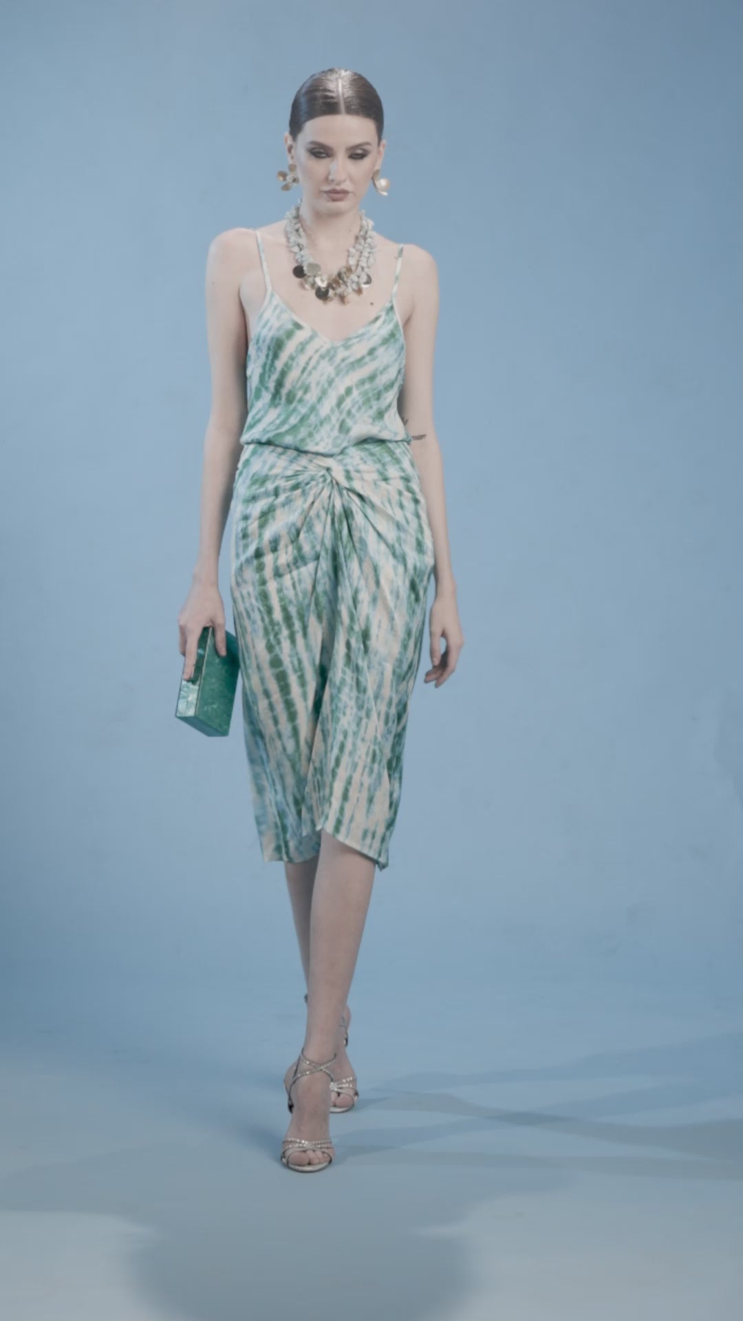 Dive into a world of elegance and style with this skirt! It is a unique piece that features a mesmerizing wave pattern, dancing gracefully around the body and mimicking the serene beauty of ocean waves.